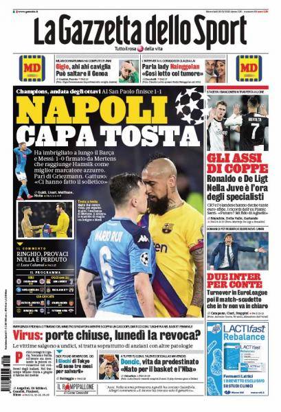 Apre così l'edizione odierna de ' la gazzetta dello sport '.