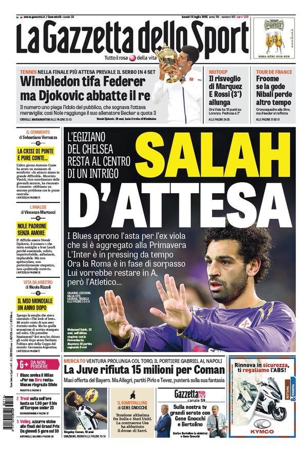 La prima pagina della Gazzetta dello Sport del 13/07/2015 from www.gazzetta.itIl napoli nella serata di domani affronterà la roma.