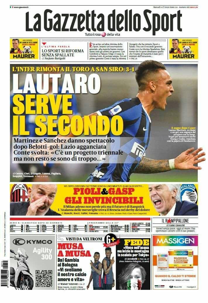 Ecco come titola la prima pagina della gazzetta dello sport.