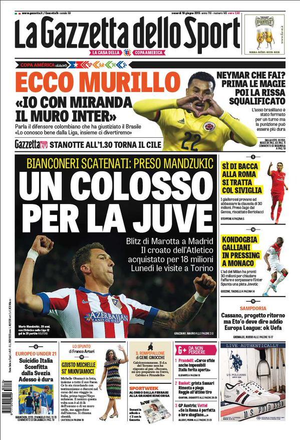 La prima pagina della Gazzetta dello Sport del 13/07/2015 from www.gazzetta.itMa da presidente uefa non è stato opportuno parlarne.
